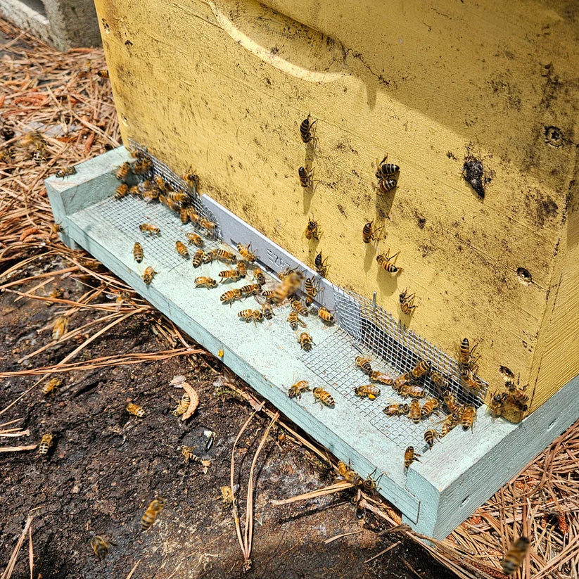Once you see only a handful of foragers, it’s time to move! Load up and secure your hive from banging around in your vehicle. After setting them down at the destination, wait a few minutes before opening them. Start with the screens. Then use a hive tool to gently lift the hive body to remove the Day Tripper. Be careful as it may be stuck with propolis. Do NOT yank on it. The flange is thin enough to be flexible and is subject to breaking. There’s a tab inside the front of the entrance that’s good to grab with a pair of needle nosed pliers.